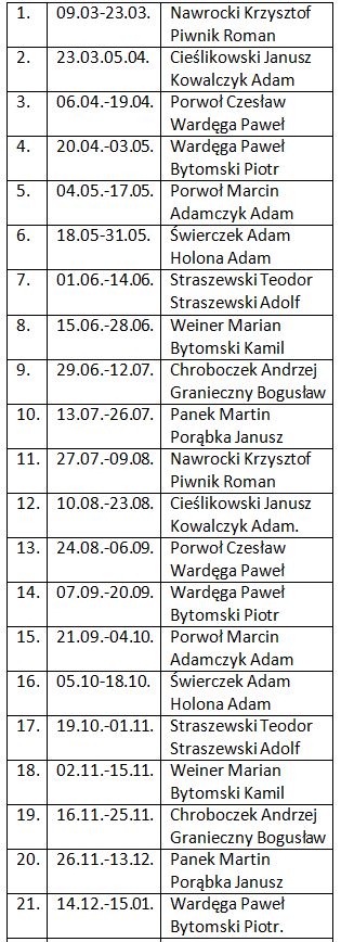 PROSZĘ SIĘ ZAPOZNAĆ Z HARMONOGRAMEN KONTROLI NA ŁOWISKU W BIEŻĄCYM ROKU 2026.
